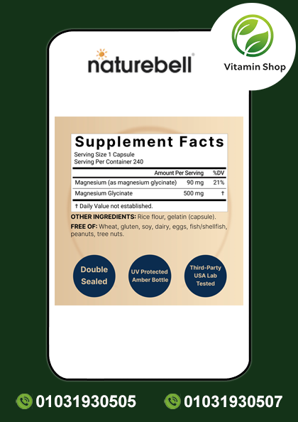 Magnesium is one of the most essential minerals for human health, involved in over 300 biochemical processes in the body. Naturebell Magnesium Glycinate 500mg provides a gentle, bioavailable, and easily absorbed form of magnesium to support overall wellness. With 240 capsules per bottle, this supplement offers a long-lasting supply of premium nutrition.